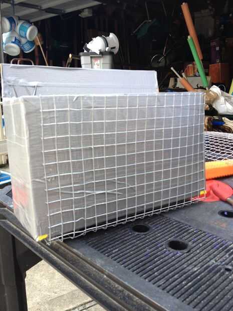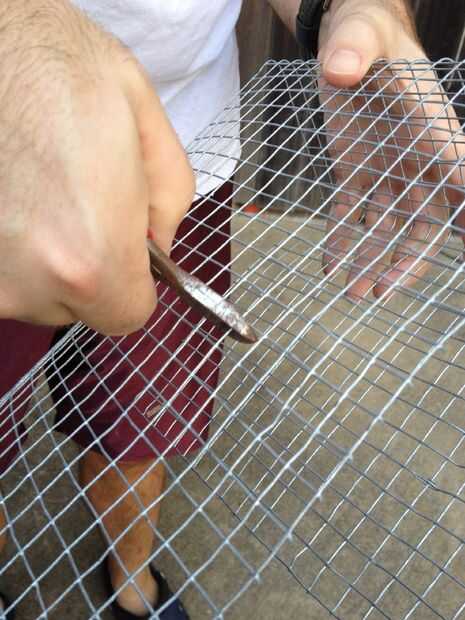 Doblar la malla para envolver alrededor de la parte exterior de la caja. Usando un martillo y el borde recto de cualquier superficie de trabajo duro, usted necesitará hacer dos curvas.