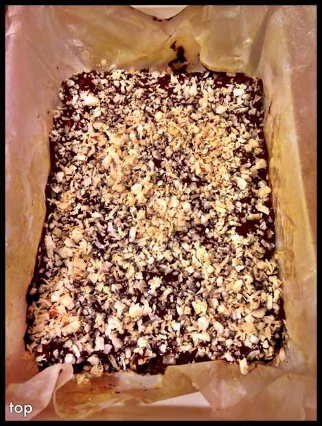 Coloque el pan en el microondas y cocine en 20 incrementos. Después de cada incremento, revise la bandeja e intentar difundir las virutas de chocolate, aunque todavía no son fundidos! Generalmente virutas del derretimiento en total aproximadamente 1 minuto. Extiende chips fundidos uniformemente sobre la capa de fruta y espolvorear con el coco restante.