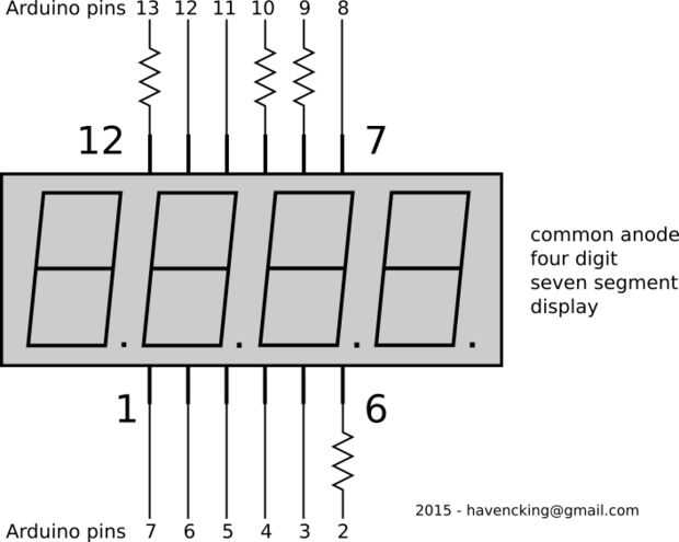 // arduino pin numbers for the 4 digits #define PIN_1 13 #define PIN_2 10 #define PIN_3 9 #define PIN_4 2