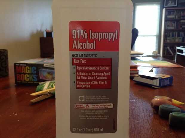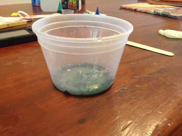 Necesita: 91% de alcohol, silicato de sodio (fácilmente se encuentra en el kit de piedras mágicas, $9,99), medición de cucharas, alimentos Dye(optional), guantes de goma, palo para mezclar, recipiente de Tupperware, pequeño envase de Tupperware, cerebro (no es fácil encontrar), bola para la comparación