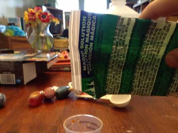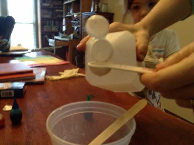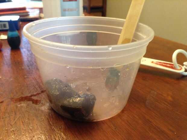 Pour silicato de sodio en pequeño Tupperware recipiente hasta que llegue a la marca 4 cucharadita, luego caer en los alimentos opcional colorante. Vierta en el recipiente de Tupperware, luego Vierta una cucharadita de alcohol de 91% en. Remover como su vida depende de ello.