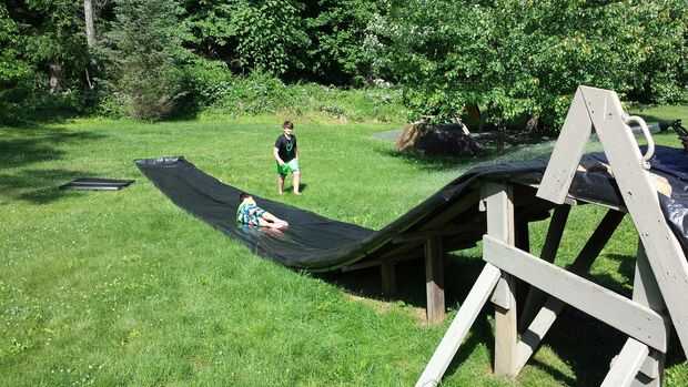 aquí hay un tutorial sobre cómo crear un deslizamiento gigante y diapositiva. Toma un par de amigos y yo 3 noches diferentes después del trabajo para completar.  Como con cualquier cosa, cuanto más lo haces mejor llegar en él.  A decir verdad, el pro