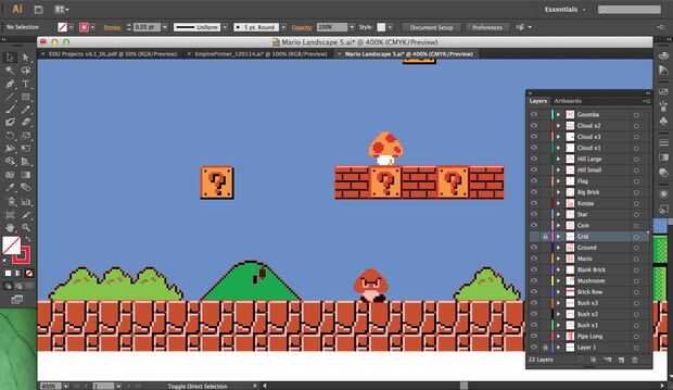 Un buscador rápido de nivel 1 de Super Mario me dio esta imagen de referencia, que tira en Illustrator para seguimiento.