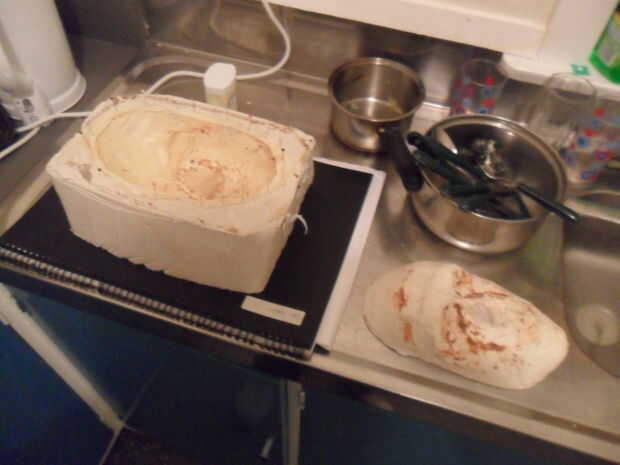 Una vez hecho esto puede eliminar el barro de la cara. conjunto molde y yeso cara a un lado para que se seque más. (pueden necesitar a Limpie suavemente el molde de alguna arcilla)