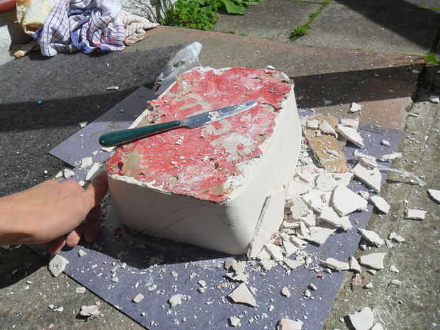 Algunos yeso logrado sneek bajo mi cartulina, así que con cuidado la había Rajada fuera.