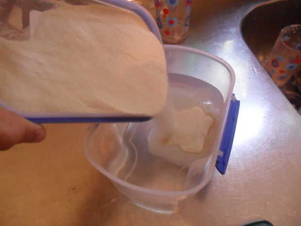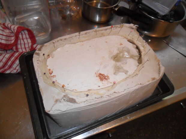 Ahora que terminaste, para hacer su prótesis, vas a tener que simplemente línea su molde yeso cara con vaselina, vierta el material protésico en su molde, y colocar tu cara sobre material protésico en el molde hasta su descarga como imagen.