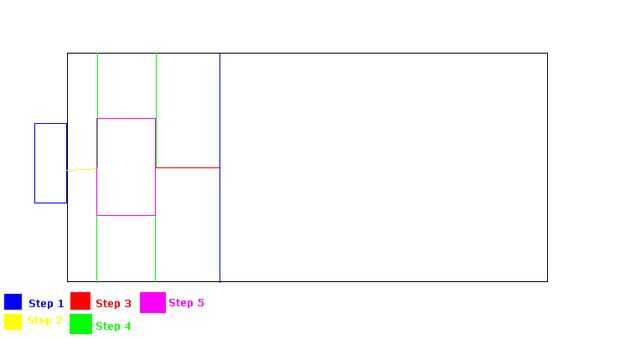 4. trazar líneas va de izquierda a derecha lados a nivel de las líneas dibujados en los pasos 2 y 3.