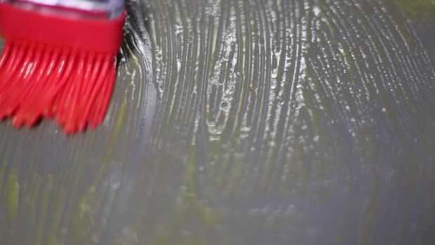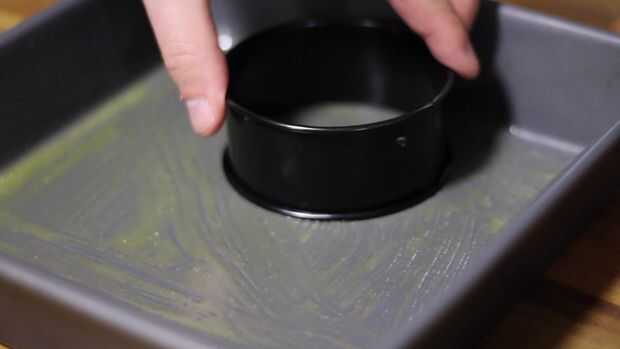Cepillo de mantequilla derretida en un metal de la bandeja de hornear y coloque un anillo de metal en la bandeja.
