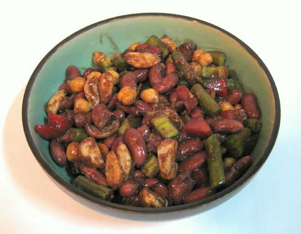 Agregar los siguiente: Ajo asado, judías verdes, alubias rojas, garbanzos, pimiento