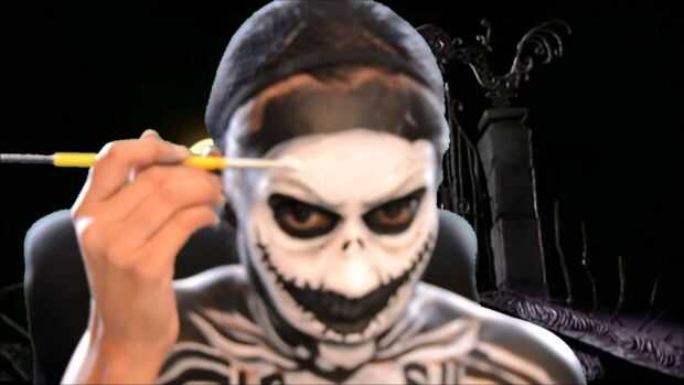 si te gusta Jack Skellington y quieres lucir como él esto es cómo!! Pintura de la cara un poco y ya está él!Empezar por el blanco en la cara con un blanco pintar la pinturaLuego, pintar las zonas que desea negro con un delineador de ojos negro/pinta