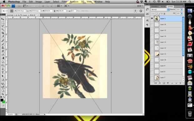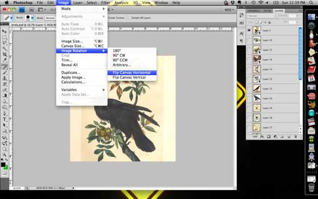 3. Si usas Photoshop (también se pueden aplicar a programas como G.I.M.P.): convertir cada imagen en un objeto inteligente--> estira para caber en un 8.5" x8.5" cuadrado--> Flip en el eje horizontal--> Guardar cada imagen como un jpg