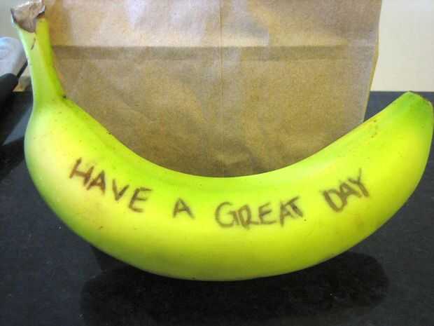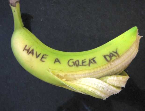 - Banana - trata de escoger aquellos con pieles uniforme que no han sido heridas mucho y no demasiado oscuro (manchas hará que tus mensajes más difíciles de leer)
