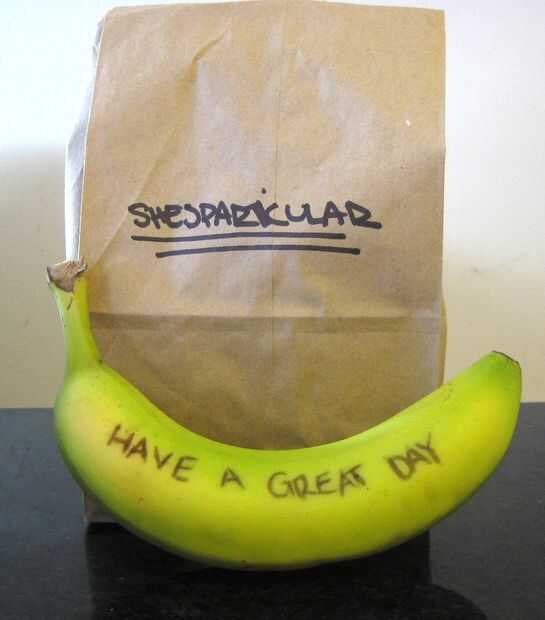 - Empacar el plátano impresionantemente inscrito y previamente en rodajas con el resto de las chucherías bolsa marrón! 2