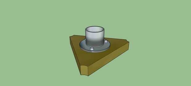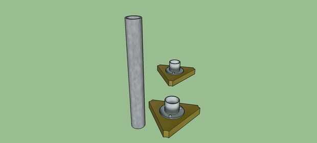 Montar bridas, como se muestra, tanto de las piezas triangulares. Si hacen algo como esto fuera de PVC, recomiendo, de lo contrario, tal vez de aluminio. NO DE ACERO. Un tubo separador correspondiente, acero no cabe permanentemente entre las dos bridas.