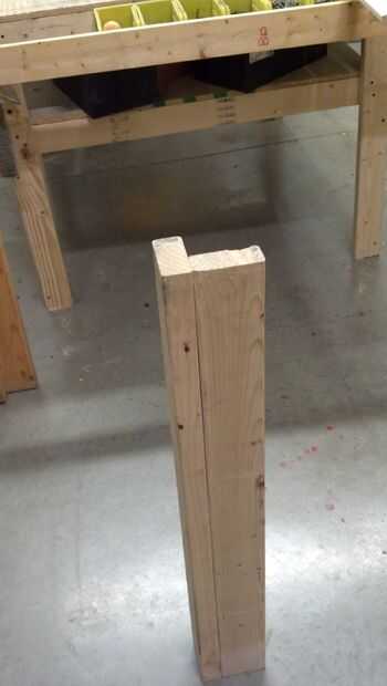 Hace unos años me encontré con un estante de madera que alguien había construido las patas con este diseño en forma de L y se me ocurrió esto funcionaría para un banco de trabajo también.