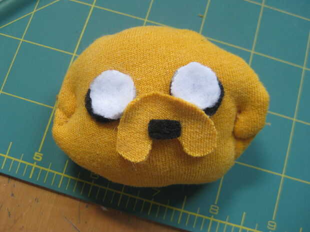 Cortar las piezas para la decoración. Para Jake, cortar dos piezas para la cabeza, de forma de ovalada y los cosieron y rellenas como una almohada. Jake de orejas son sólo 'J' en forma de líneas de puntadas.