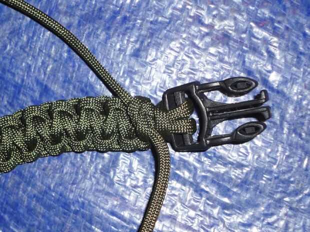 - Take los dos finales y atarlos en una sola apretada sobre el nudo de la mano, tire el nudo muy apretado