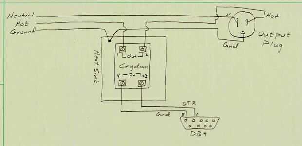 El circuito de cableado no podía ser mucho más fácil que esto! El bloque de Crydom es simplemente en línea con el lado caliente de la línea de 110 VCA. El lado neutral pasa a través. Pasar la tierra a través de demasiado. Pero también conectar la tierra al bloque disipador de calor/Crydom a tierra.