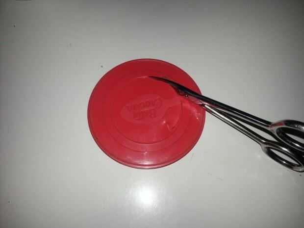 3.-utilizar un marcador mágico para trazar alrededor de la malla de filtro con la parte delantera del envase como guía (ver imagen)