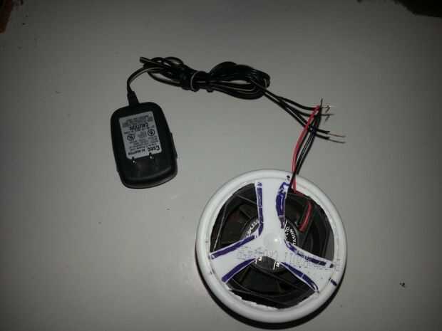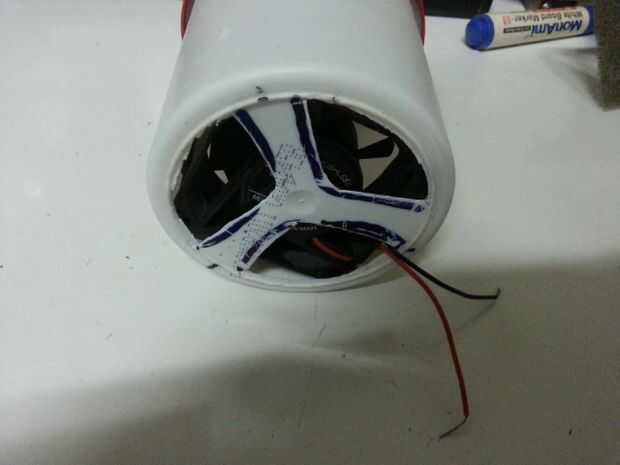 7. - Conecte los cables del ventilador a un transformador de la alimentación y aislar con cinta aislante.