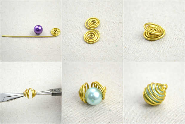5. las dos puntas de la abrazadera y tire ligeramente hacia fuera. Cuando consigue una primaria forma de jaula, parada para llenar el grano de la perla;