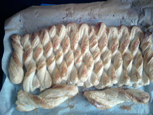 Como algunas de las tiras se habían ampliado en uno a, cuando llevaron el horno mientras estaban aún calientes, usé un cuchillo para separarlos.