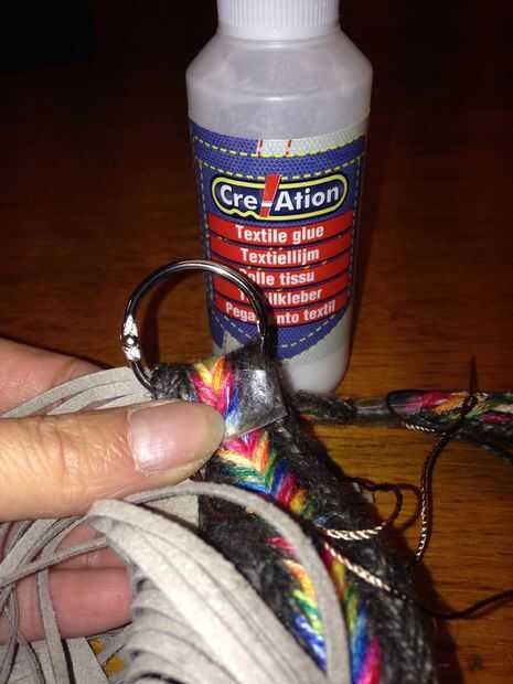 Deje que se seque completamente y luego doblar en su scrapbookring a medida. A continuación sólo a coser el final a la tela, creando un lazo pequeño. Hacer esto con todos los extremos y se hacen sus bootbelts!