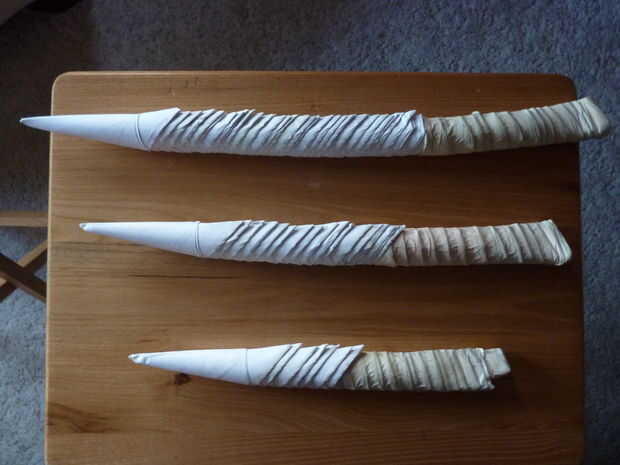 Tenga cuidado al hacer pivotar su espada o daga, el papel puede venir suelto y volar.
