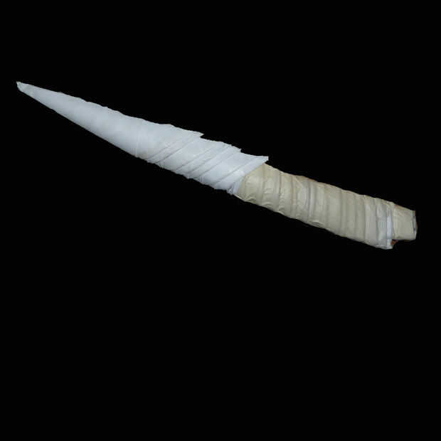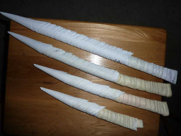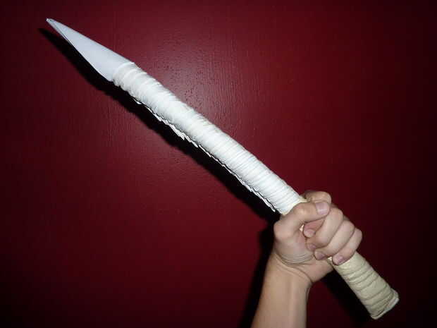 5. hacer un split que va en el extremo de su espada (para hacer el pliegue justo derramado encima de papel en forma de cuchillo pequeño ajuste en el mango. Cuando en el fragor de la batalla saca la fractura de una mano superior)