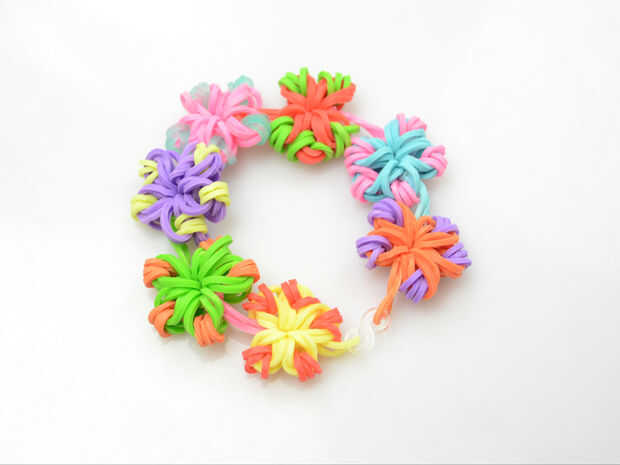 Super fácil goma DIY joyería caramelo Color flor telar pulseras (15 / 16 paso)