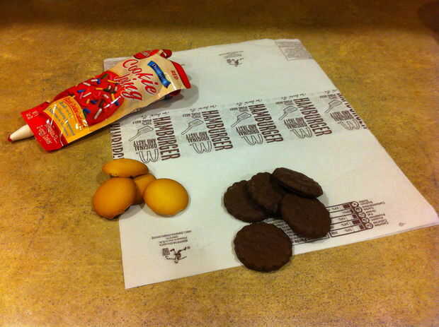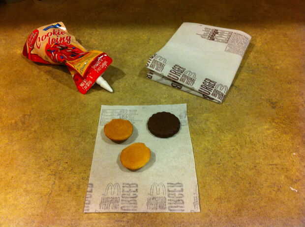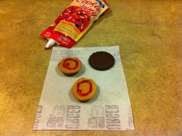 Glaseado para galletas juntos (rojo para la salsa de tomate, amarillo mostaza o verde lechuga)