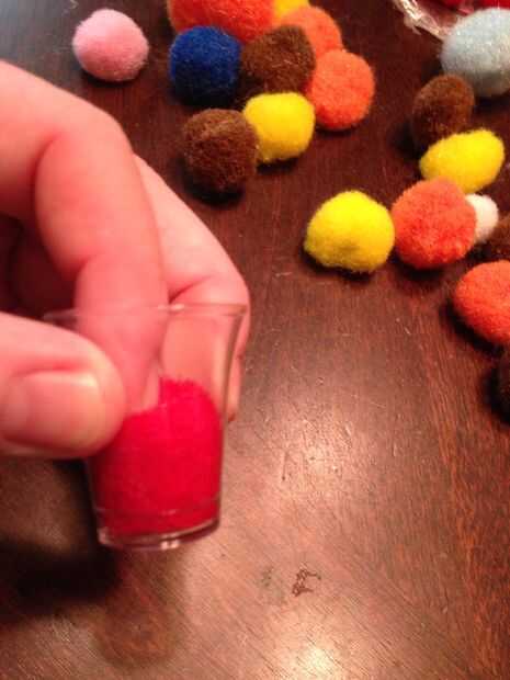 Para sno-conos, empuje pompones pequeños en primera. Para bebidas capas, empuje en pom-oom pequeño de un solo color. Para bebidas sólidas, empuje en un POM-POM.