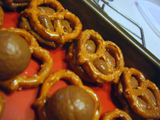 Paso 4: Retire del horno y un Pretzel lugar en la parte superior cada Pretzel, presione hacia abajo.