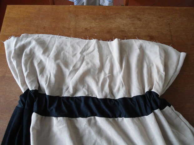 Hacer un dobladillo y pespuntear tu vestido según el margen que elegiste, dejando una pequeña abertura para deslizarse en la venda de elástico.