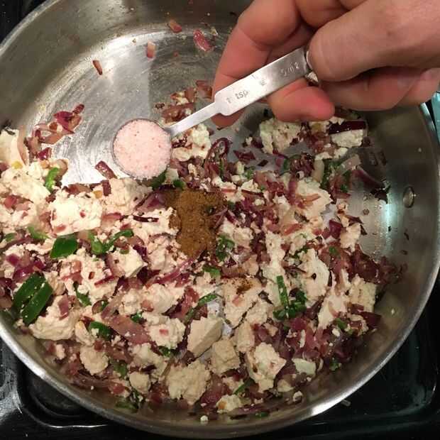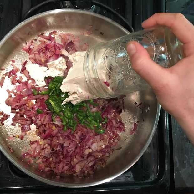 Mezcla todo bien y romper el tofu como mezcla.