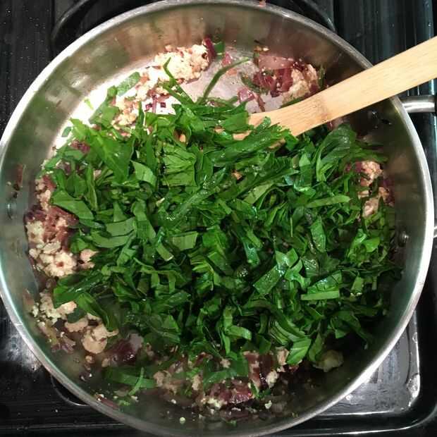 Por último añadir la espinaca picada y cocine por alrededor de 2-4 minutos hasta que la espinaca es suave.
