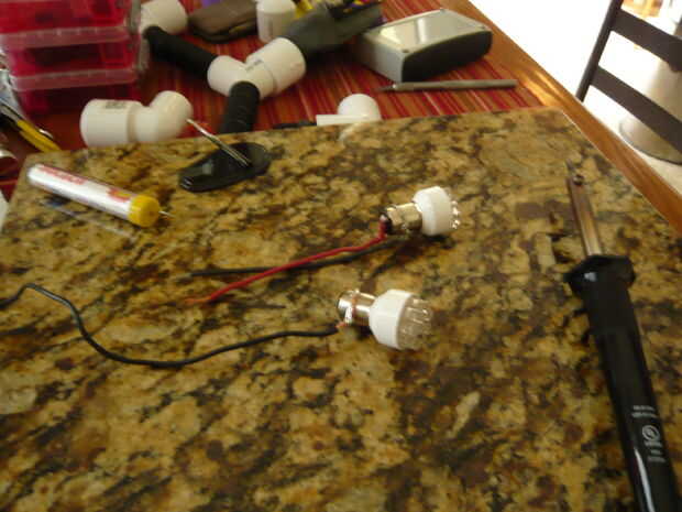 Este paso es bastante obvia solo soldadura un cable rojo al contacto positivo y negro a la tierra en contacto con ambas luces.