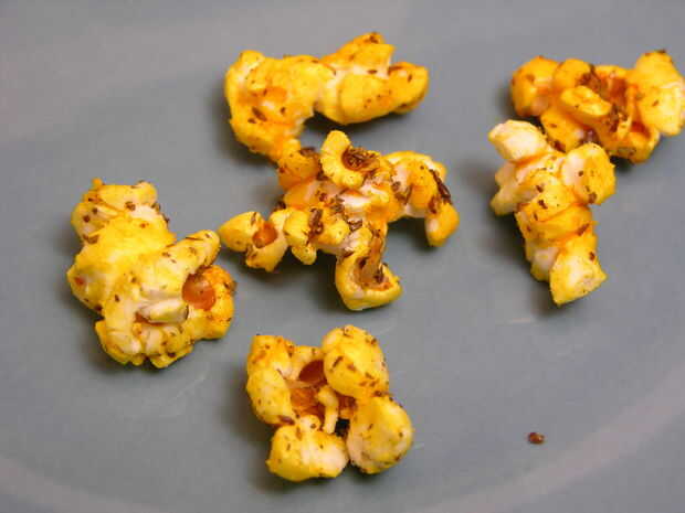 La linaza (tostada) botas las palomitas con sorprendente aroma y nutrientes beneficiosos. El aceite de Palma rojo le da el color dorado de palomitas de maíz y lo carga con las vitaminas. Si no podía encontrar en su tienda local, puede encontrar aceite de Palma rojo y linaza en línea.