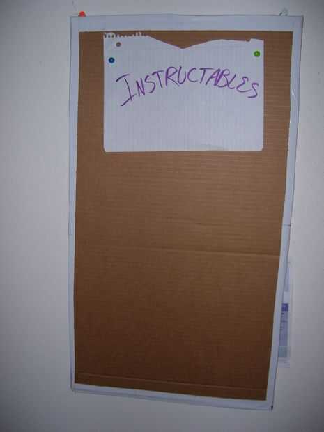 a menudo perder documentos importantes; invitaciones, correos electrónicos, pedidos, planes, sólo para encontrarse después de una rociada loca y una ráfaga de todo volando por todas partes hasta que la cosa se encuentra. Después de casi perder una importante recepción, recordé algo que mi hermana tiene en su cuarto para recordar documentos importantes: un pedazo grande de cartón, o que es como al principio, clavado en la pared. Pero en realidad es un pensamiento muy hábilmente hacia fuera y tablón de anuncios barato.
