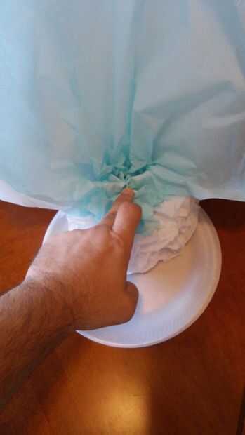 Con la pistola de pegamento caliente, poner pegamento en la parte inferior plisada de un pétalo y prensa en placa. Continúe alrededor de la placa hasta que todos los cinco pétalos. Asegúrese de que los pétalos se pegan cerca uno del otro para crear el centro. Ahueque el centro y pétalos según sea necesario.