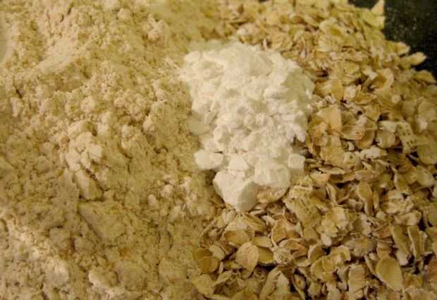- Mezclar la harina, avena y polvo de hornear