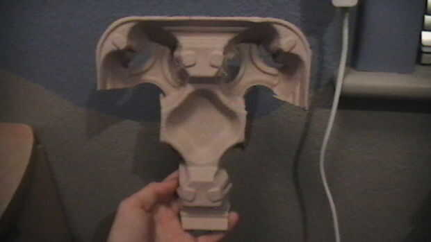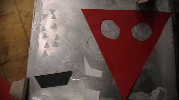 Entonces, usted necesita cortar el papel de construcción. se necesita un triángulo grande con dos agujeros (agujeros de ojo hacen a su medida) para base de color de la máscara, un trapezoide negro y muchos triángulos blancos para los dientes. También necesitará dos medianos donuts (para ir alrededor de los orificios del ojo, tamaño apropiado) y dos cuernos (el tamaño es opcional en los cuernos). Los cuernos son irregulares así que Compruebe la foto. La imagen muestra el tamaño relativo y la instalación. Todos los tamaños están en relación con el tamaño del sostenedor de la bebida que usted tiene.