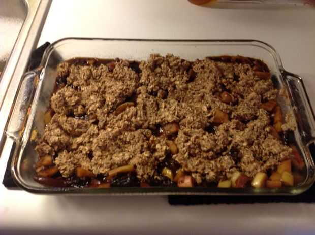 Poner la fruta hacia abajo primero y luego el pegote en la masa. La parte superior se convierte en una forma de forma libre, por lo que no te preocupes de lo que parecer perfecto... es zapatero.