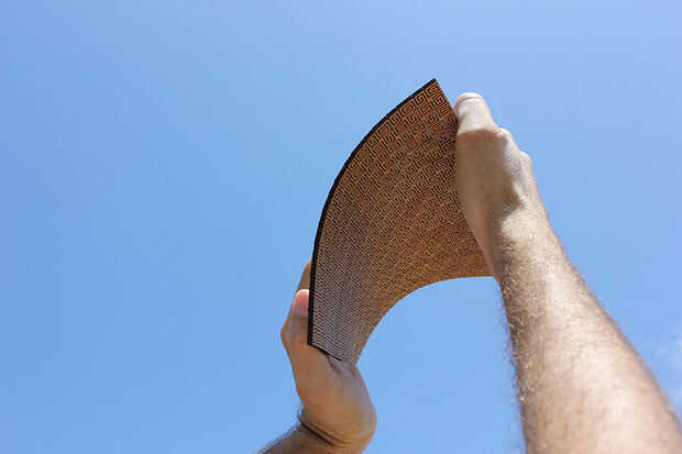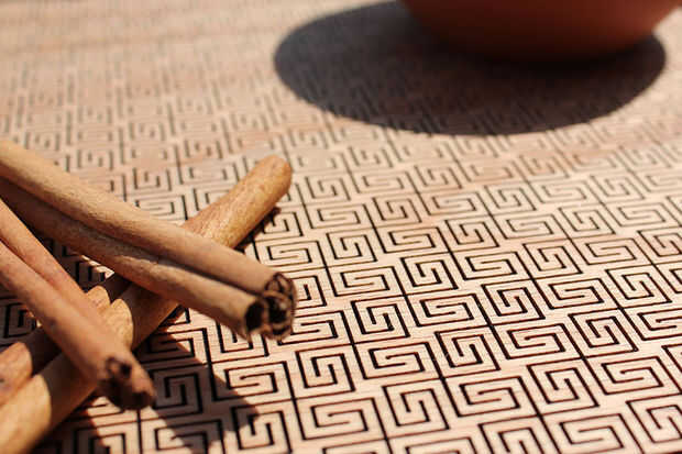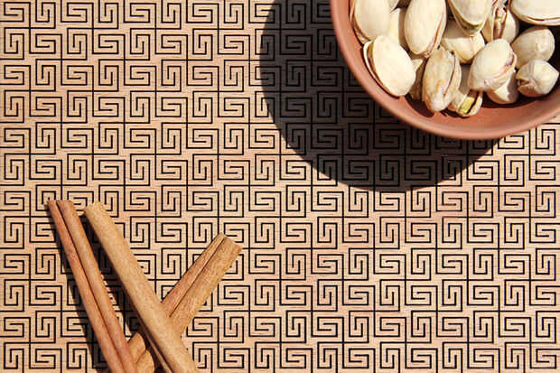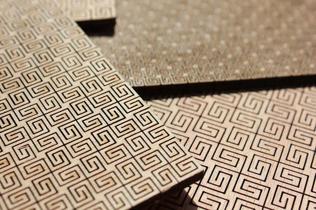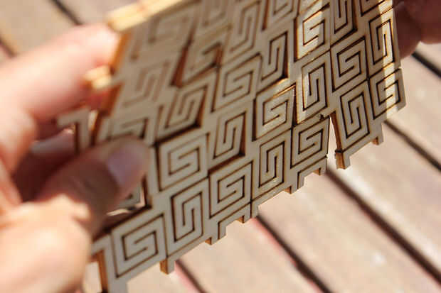 Inmediatamente prendí mi máquina y comenzó a jugar con esta superficie. La sensación de tener ese pedazo de madera en mis manos fue increíble, algo que sólo segundos antes, era un pedazo rígido de madera contrachapada ahora era flexible como el papel. Pero sólo en una dirección, en el otro era todavía rígido. Entonces decidí cortar la superficie para poder doblar en ambas direcciones, por lo que pude lograr la doble curvatura Gaussian, positivo y negativo. Después de un par de intentos fallidos que se basan en una variedad de perforaciones, me di cuenta que lo que estaba haciendo no tiene sentido. He estudiado la forma en que se cortó la primera superficie. Para doblar se convirtió en una serie de elementos delgados que se tuercen fácilmente, que son interconectados en puntos fijos. Cuanto mayor sea la distancia entre los puntos fijos y los elementos de la más delgados, más flexible las superficies es. Aunque un elemento puede torcer para sólo unos pocos grados (antes de que se rompe) al multiplicar muchas veces, la flexibilidad es increíble. Me di cuenta que debo aplicar la misma teoría en ambas direcciones, por lo que recurrí a los elementos de línea en una espiral rectangular, cuyos segmentos gire en ambas direcciones, y de esa manera que conectado el punto fijo con elementos muy largos y delgados. El resultado fue aún más fascinante.