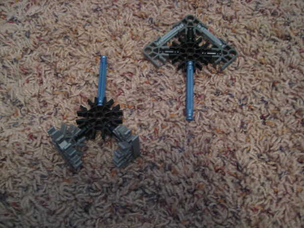Para ser añadido a los conectores de copo de nieve en el árbol. Se hacen con 4 conectores de copo de nieve, 10 barras verdes o negras, 4 Cañas azul azules o plateados, 4 barras de plata o blanco, 8 complemento morado o plata conectores juntos y 6 conectores rojo o gris. Montar como se muestra.