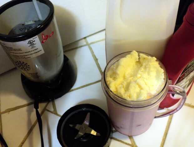 Darle una sacudida para obtener líquido para abajo/arriba para conseguir el helado de la pared del recipiente.