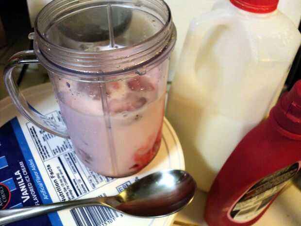 Llenar el resto con helado de vainilla. No embalar en demasiado como se arroje a chorros la leche haciendo un lío. También, es donde las cuchillas se a excavar primero debe ser capaz de mezclar cosas.