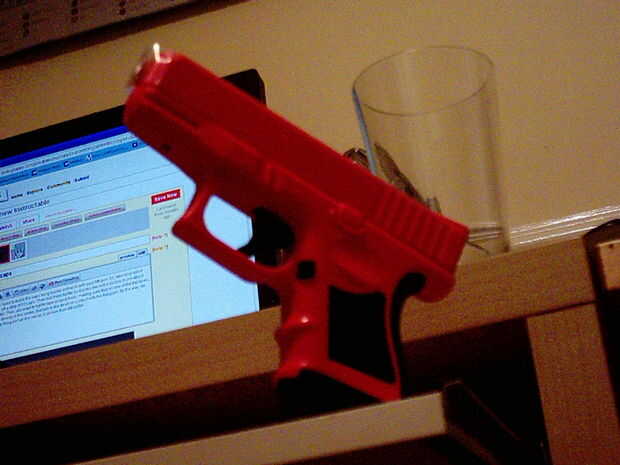 1. no punto delante de la gente-el percutor' (realmente un pellets de 6 mm BB) podría eludir las tapas y tirar hacia afuera como si disparaban a ellos con una pistola de BB de todos modos