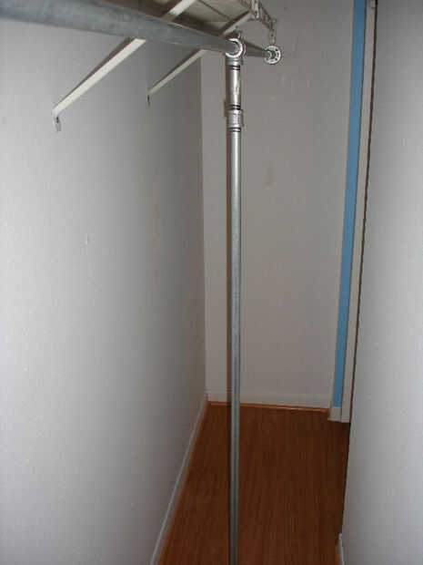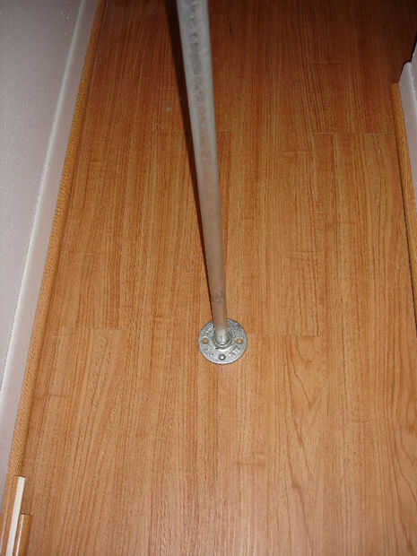 Luego puse la barra de soporte vertical, que consistía en una barra de 5 pies con un reborde en la parte inferior, y un acoplamiento conectado a un niple de 5" en la parte superior.
