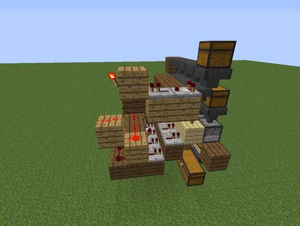 Esta parte de la redstone es apagar las tolvas cuando no hay ningún elemento más en la tolva de entrada. Para construirlo se necesita a 2 cuadras de la tolva de entrada y un comparador de redstone señalando en un repetidor de redstone que apunta en otro bloque de delante con una antorcha de redstone. Después de que usted coloque un bloque 2 cuadras debajo de la antorcha de redstone y poner polvo redstone en ese bloque y luego poner abajo otra cuadra diagonal que uno, entonces puso un pedazo de redstone en él. Ahora lo último antes de que procedamos a la porción de autofuel de esta compilación, que desea colocar una vagoneta de la tolva en las pistas de potencia vagoneta y presiónela para conseguir mover.